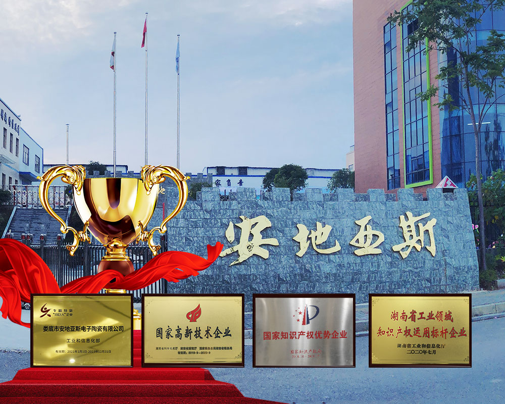 婁底市安地亞斯電子陶瓷有限公司成立于2004年, 是一家集新能源汽車陶瓷零部件、智能傳感器陶瓷、電子信息陶瓷、軌道交通、航空航天陶瓷、石墨匣缽等研發(fā)、生產、銷售于一體的國家專精特新小巨人企業(yè),也是一家擁有知識產權和發(fā)明專利的高科技企業(yè)。